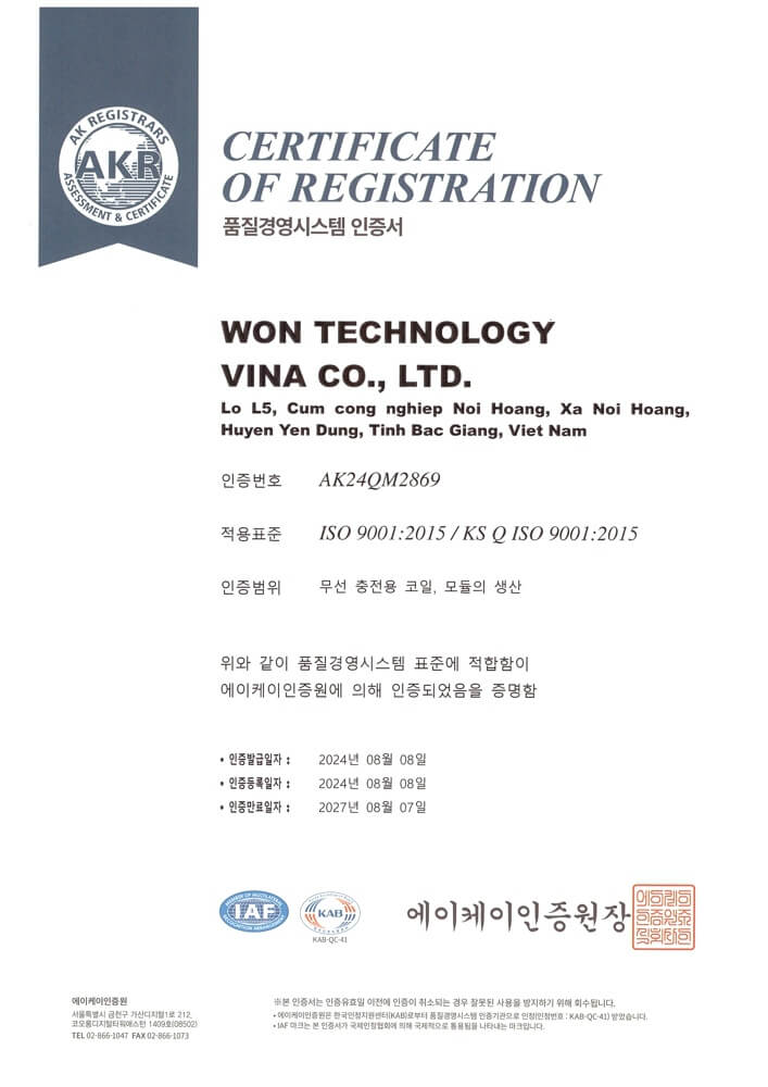 Lot L5, Noi Hoang Industrial Cluster, Tien Phong Ward, Bac Ninh Province, Vietnam,Bac Giang zip code: 26000